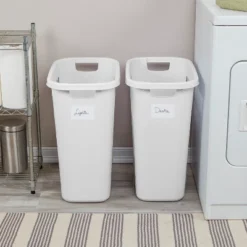 The Rectangular Open Hamper features a slim profile and a generous 1.8 bushel capacity, making it an ideal solution for large families looking to save some space. A symmetric rectangular hole pattern throughout the hamper provides ample ventilation for dirty laundry, while a wide opening allows for quick and easy access when loading and unloading clothes. This hamper features two through handles integrated into the reinforced rim that offer a comfortable grip surface for lifting and carrying. Its sleek, rectangular profile takes up minimal floor space, making it ideal for apartments, dorm rooms, or for transporting clothes between locations. The overall assembled dimensions of this item are 20″ L x 13 1/8″ W x 23 1/4″ H.
