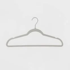 Tidy up your closet with the help of this 10-Pack of Thin Plastic Hangers from Brightroomâ„¢. These hangers feature a classic design for holding different clothing items, and they feature easy-hang tabs to prevent clothes from falling. This pack includes 10 hangers, each featuring a sleek design in a gray hue to add functional storage to your closet.