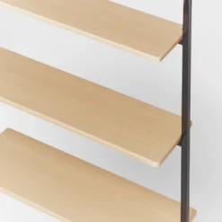 - Natural wood and black metal construction
